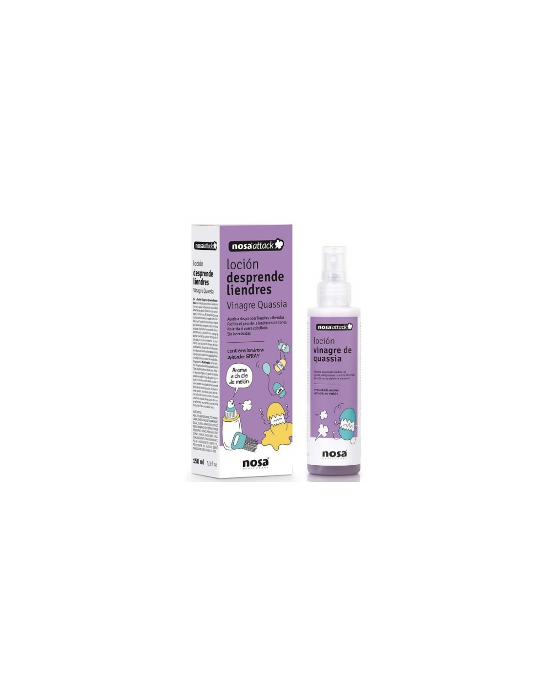 Loció antipolls natural amb vinagre i quassia Nosaattack Loció combina vinagre i extracte de quassia per ajudar a eliminar polls i llémenes de manera suau però efectiva. Ideal com a tractament complementari després de la loció pediculicida. ? Ingredients dorigen vegetal ? Facilita la desenredada i neteja del cabell ? Sense insecticides químics