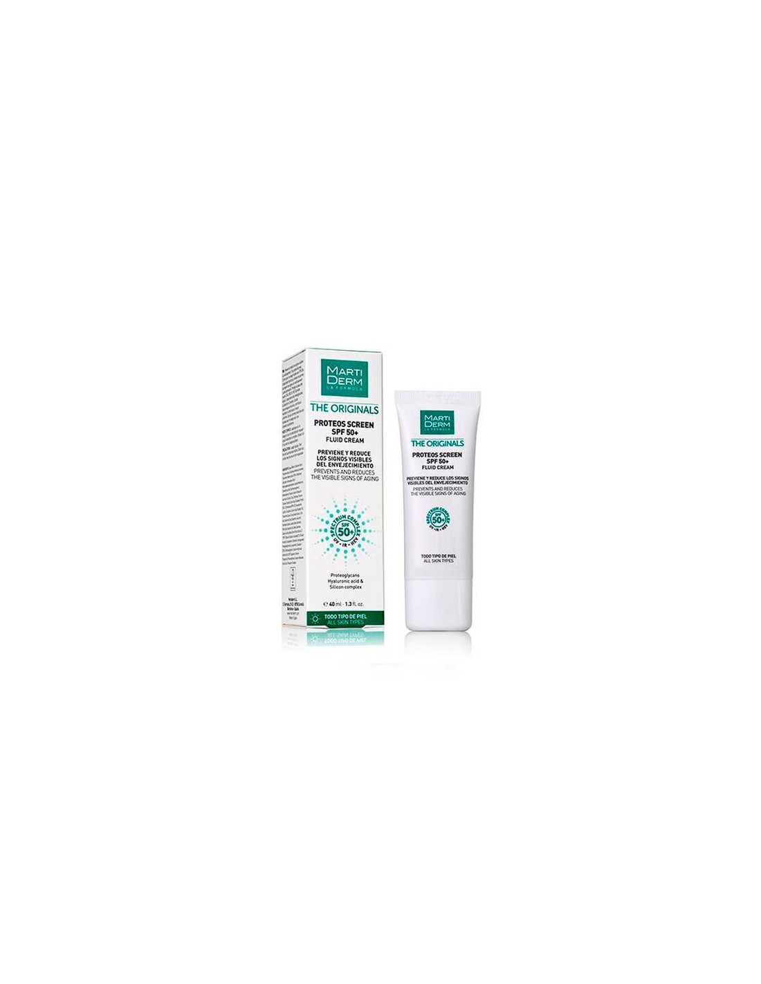 MARTIDERM THE ORIGINALS PROTEOS SCREEN CREMA FLUIDA SPF 50+ 40 ML es una crema fluida con factor de protección solar SPF 50+.