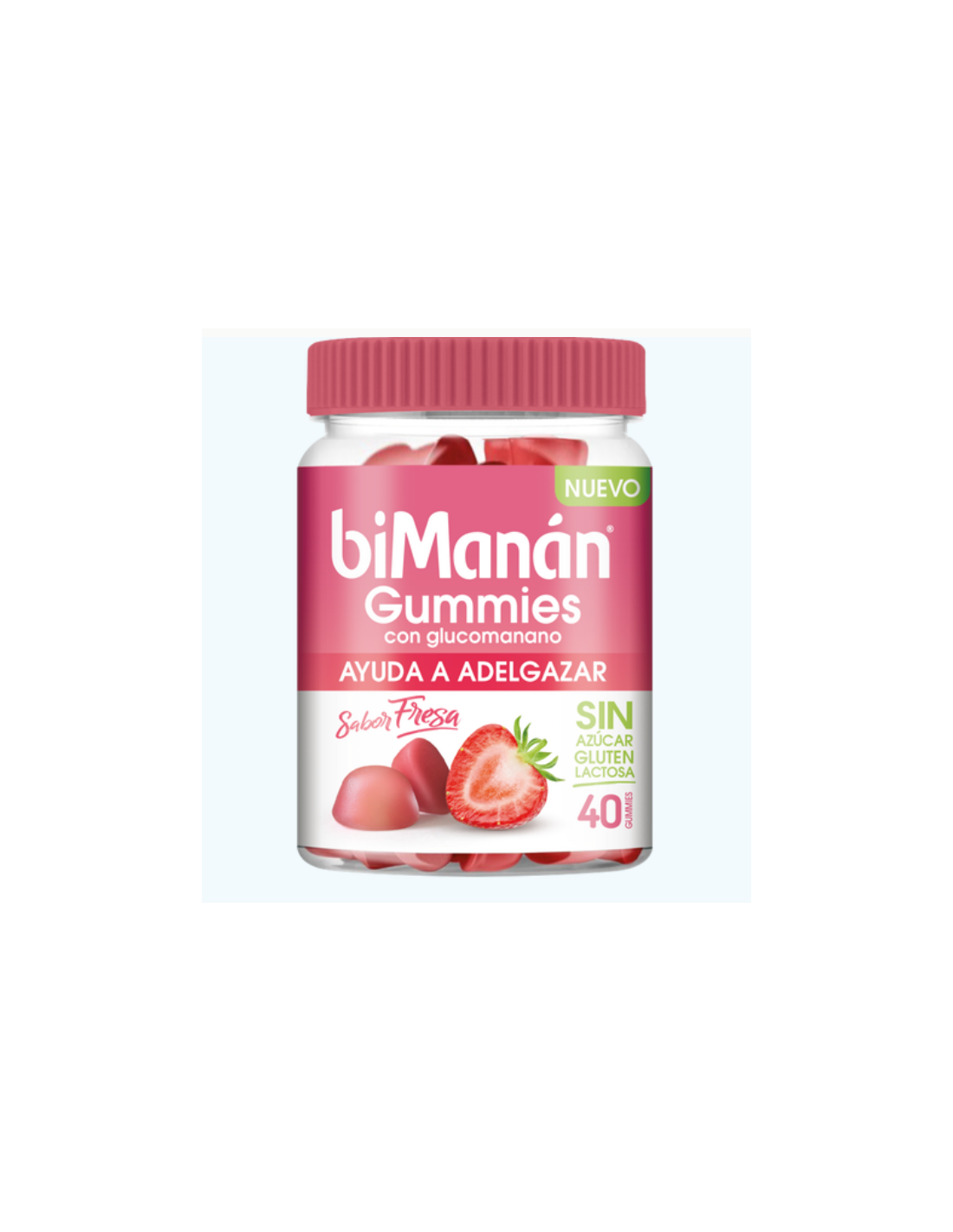 Gominolas saciantes con glucomanano para el control del peso Las Bimanan Gummies con Glucomanano contribuyen a la pérdida de peso dentro de una dieta hipocalórica. Su formato en gominola facilita su toma y aporta fibra que ayuda a aumentar la sensación de saciedad. ? Sin azúcares añadidos ? Complemento ideal en dietas de control de peso ? Envase con 40 gominolas