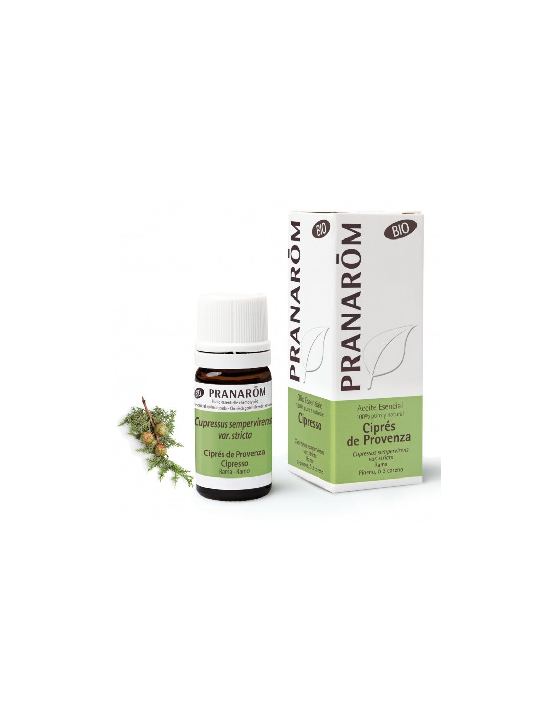 El PRANAROM ACEITE ESEN CIPRES PROVENZA BIO 5 ML está compuesto únicamente por aceite esencial de ciprés proveniente de agricultura biológica, sin aditivos ni conservantes artificiales.