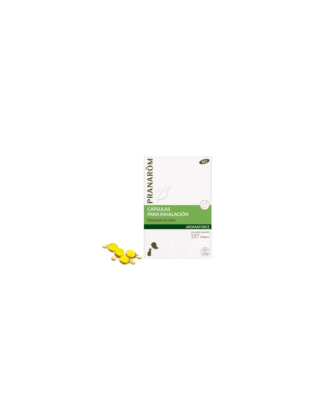 Cápsulas con aceites esenciales para inhalación que favorecen la respiración y descongestionan las vías aéreas. Eficaz en resfriados y sinusitis.