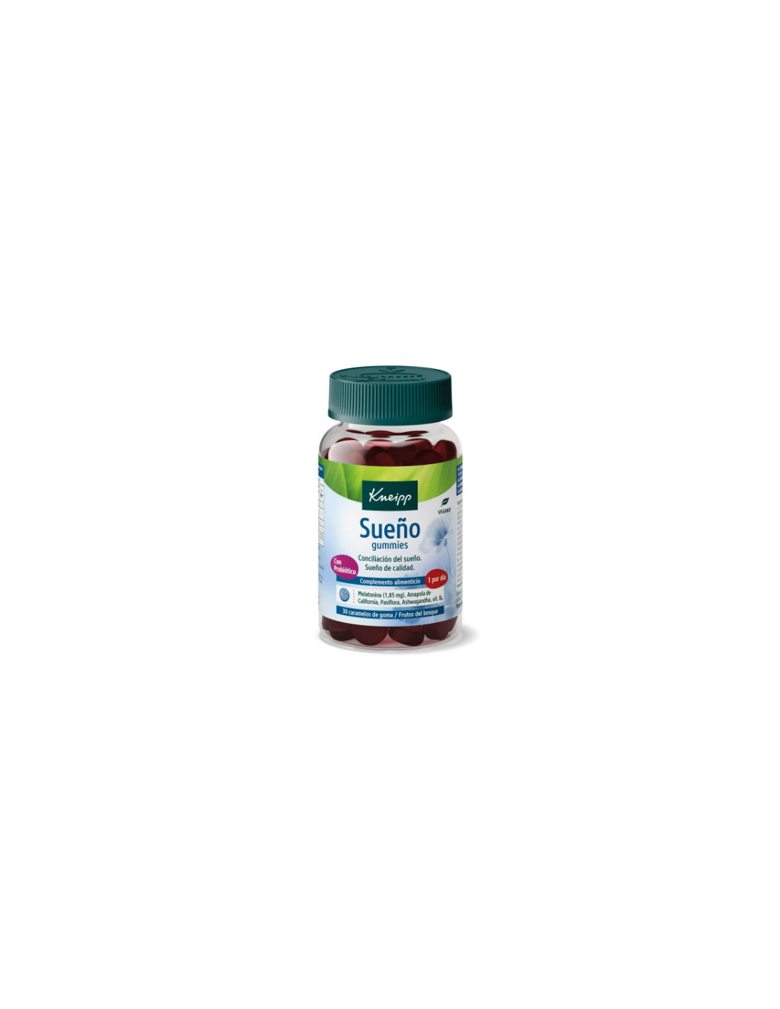 Kneipp Sueño es un complemento alimenticio en formato gominola con sabor a frutos del bosque, ideal para favorecer un descanso reparador. Su fórmula incluye melatonina, lavanda y extractos vegetales que ayudan a reducir el tiempo necesario para conciliar el sueño.