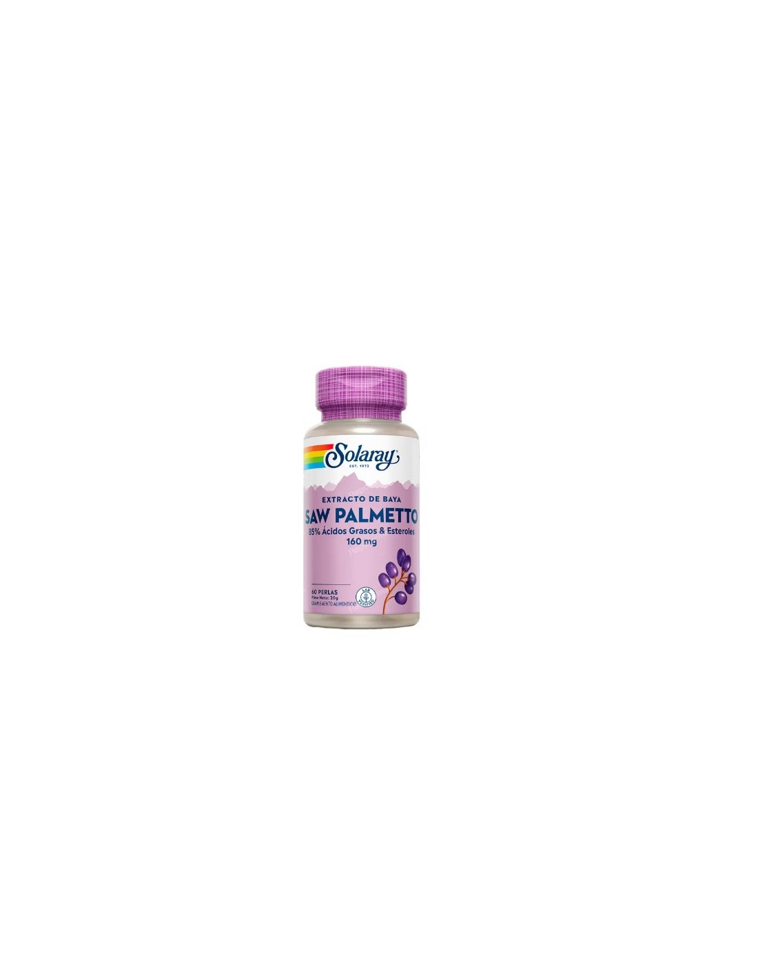 Extracto de Serenoa repenso para la salud prostática El Saw Palmetto de Solaray es un suplemento natural pensado para apoyar la salud de la próstata y del sistema urinario masculino. Ideal a partir de los 40 años. 60 perlas blandas Alta concentración de extracto Sin gluten ni lactosa