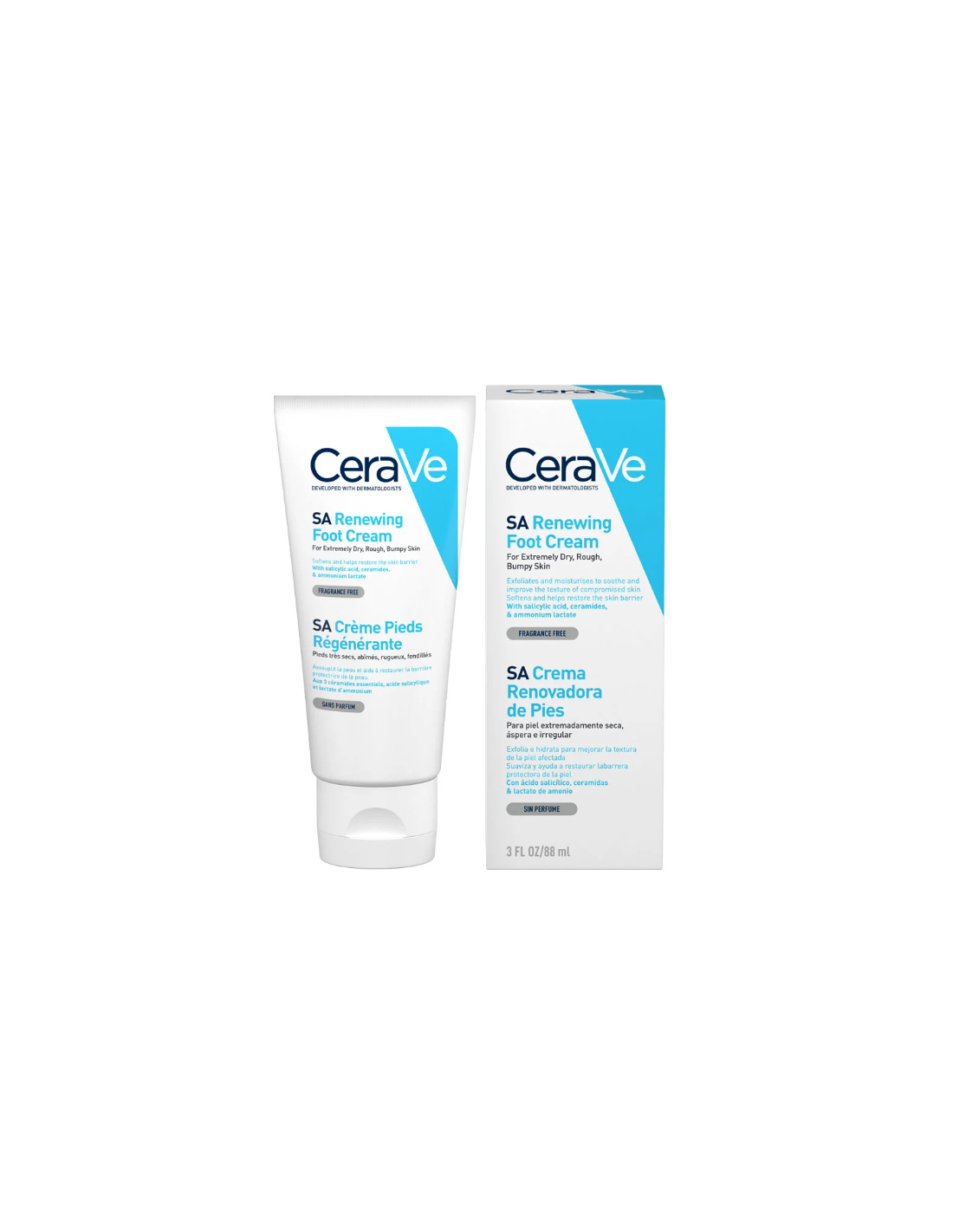 La Crema Renovadora de Pies de CeraVe está formulada con Ácido Salicílico y 3 ceramidas esenciales, que exfolia, hidrata intensamente la piel agrietada o extremadamente seca, mientras ayuda a restaurar la barrera protectora de la piel. Sin perfume. Humecta de manera efectiva y es de rápida absorción, no grasosa.