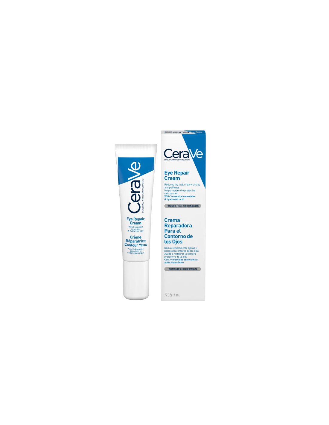 Crema hidratante para el contorno de ojos. Todo tipo de piel: Cuando se trata de la piel del contorno de los ojos, las bolsas y las ojeras son algunas de las preocupaciones más comunes. La Crema Reparadora para el Contorno de Ojos de CeraVe cuenta con extractos marinos y botánicos que ayuda a iluminar toda la zona de los ojos. Hidrata el contorno de ojos, al mismo que ayuda a reducir las bolsas y ojeras. Formulado con Ácido Hialurónico, para humectar la zona; Niacinamida, para calmar la piel, y 3 ceramidas esenciales para restaurar la barrera protectora. Asimismo, tiene la Tecnología patentada MVE, para mantener la hidratación por 24 horas. No es grasosa y es de rápida absorción. Sin perfume ni parabenos, no comedogénico.