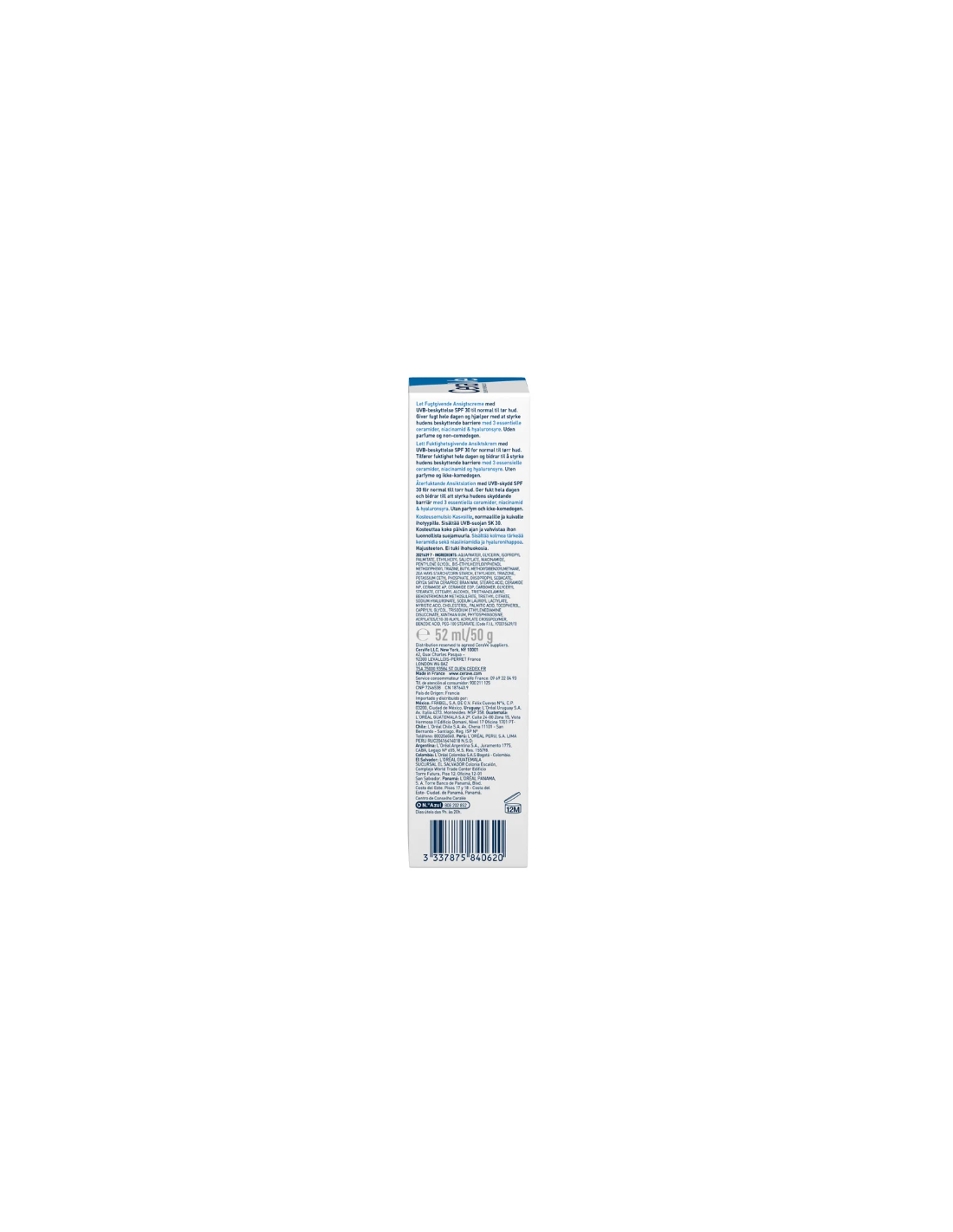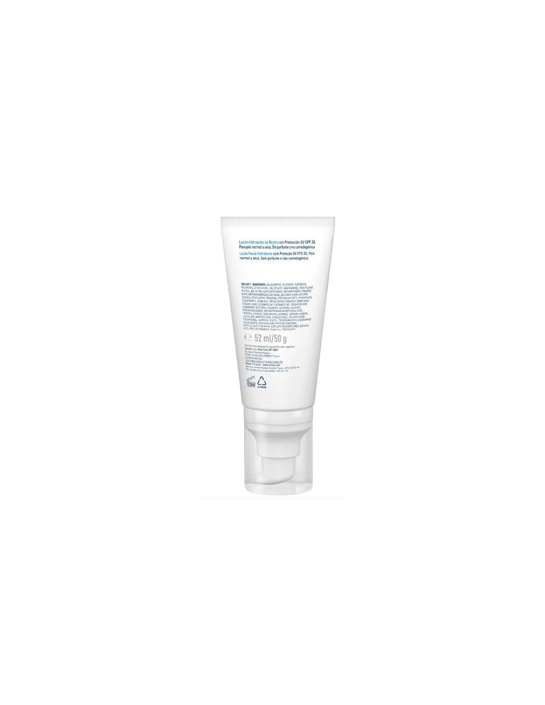 La Loción Hidratante de Rostro con SPF 30 de CeraVe hidrata y ayuda a restaurar la barrera protectora de la piel, mientras la protege de los rayos del sol. Contiene 3 ceramidas esenciales, Ácido Hialurónico hidratante y Niacinamida calmante, además de la Tecnología MVE para proporcionar una hidratación por 24 horas. Es de fácil aplicación, y ayuda a tener una piel suave y restaurada. Fórmula no comedogénica, es decir, no obsturye los poros. Sin perfume y. Piel normal a seca.