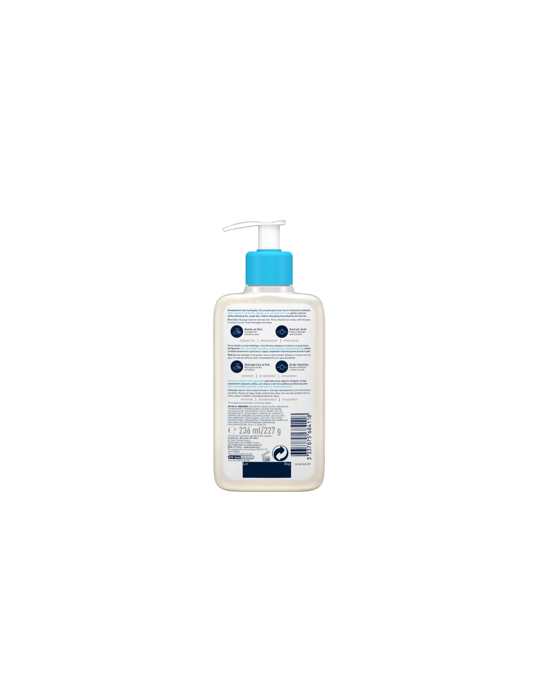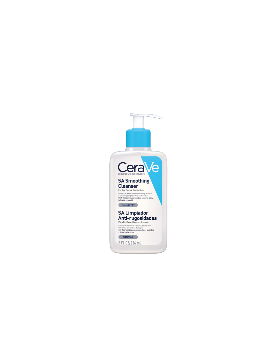 El SA Limpiador Anti-rugosidades de CeraVe está formulado para exfoliar, suavizar y limpiar de forma eficaz la piel seca, irregular y rugosa sin alterar la barrera de la piel.Diseñado para mejorar la textura de la piel gracias al ácido salicílico, este gel limpiador en espuma de textura refrescante elimina la suciedad, la grasa y exfolia la piel. Las tres ceramidas esenciales de CeraVe ayudan a mantener su barrera protectora y la niacinamida aporta sensación de confort. Fórmula hipoalergénica, sin perfume, sin exfoliantes mecánicos y es no comedogénico.
