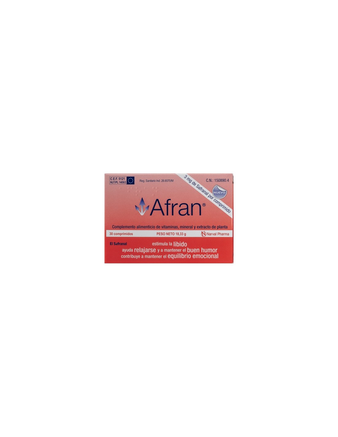 Ayúdate a mantener el equilibrio emocional, y el buen humor gracias al safranal de Afran, un complemento alimenticio formulado a partir del extracto del azafrán. El magnesio y la vitamina B6 que contiene, contribuyen a una normal función nerviosa, ayudan a reducir el cansancio y la fatiga, y además la Vitamina B6 contribuye a unas normales funciones psicológicas.