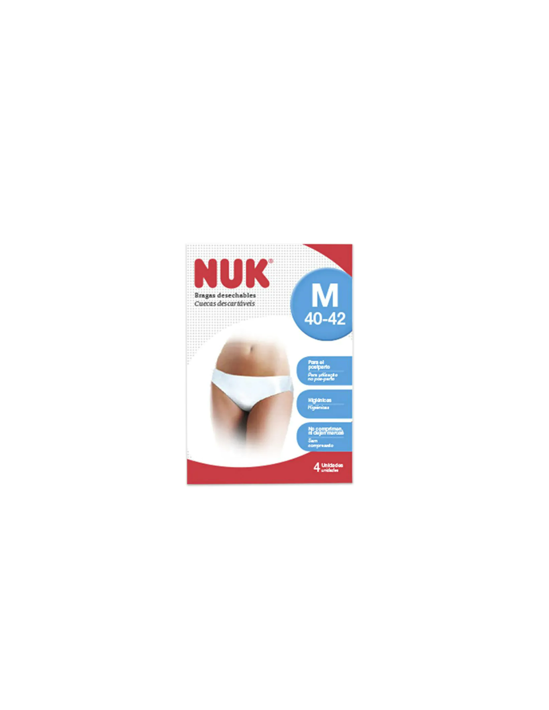 NUK aconseja el uso de bragas desechables durante el postparto para evitar el manchado de su ropa habitual. Para el postparto e higiénicas. No comprimen, ni dejan marcas. Confortables gracias a su tejido extra suave y sus costuras acolchadas. Bolsa con cierre, más higiénico. Disponibles en 3 tallas: S, M y L.