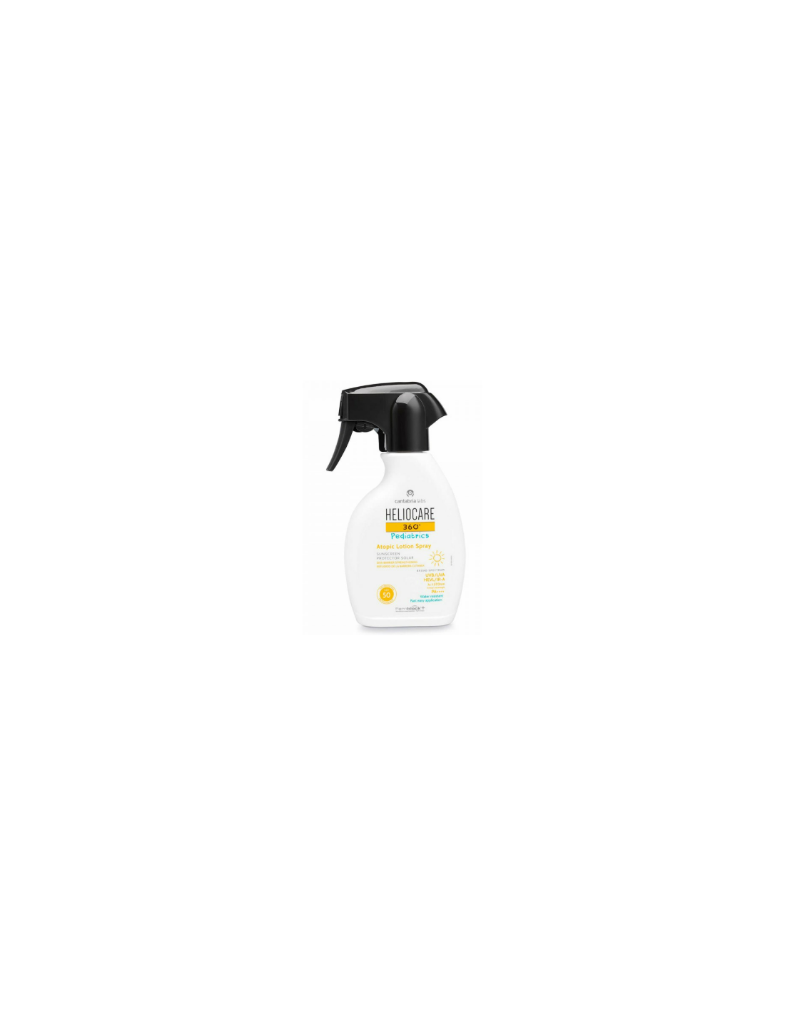 Heliocare 360 Pediatrics Loción Spray Piel Atópica SPF50 250 ml Fotoprotección muy alta SPF 50, indicada para pieles atópicas y para la delicada piel de los niños/as. BENEFICIOS - Con Fernblock®+, filtros específicos y activos reparadores y antioxidantes, protege frente a las 4 radiaciones (UVB, UVA, Visible e Infrarrojo), neutraliza y repara el daño solar. - Además, la fórmula contiene arginina y glicerina, que contribuyen a la hidratación y al buen estado de la función barrera de la piel. - Resistente al agua. - Su formato en spray con pistola y su textura ultraligera garantizan una fácil y rápida aplicación. - Hipoalergénico. - Testado bajo control dermatológico y pediátrico. Consejo técnico Uso externo. Evitar el contacto directo con ojos y mucosas. Evitar la exposición prolongada al sol durante las horas de más intensidad. Utilizar ropa, gorro y gafas de sol para protegerse. No exponer a bebés y niños pequeños directamente al sol.